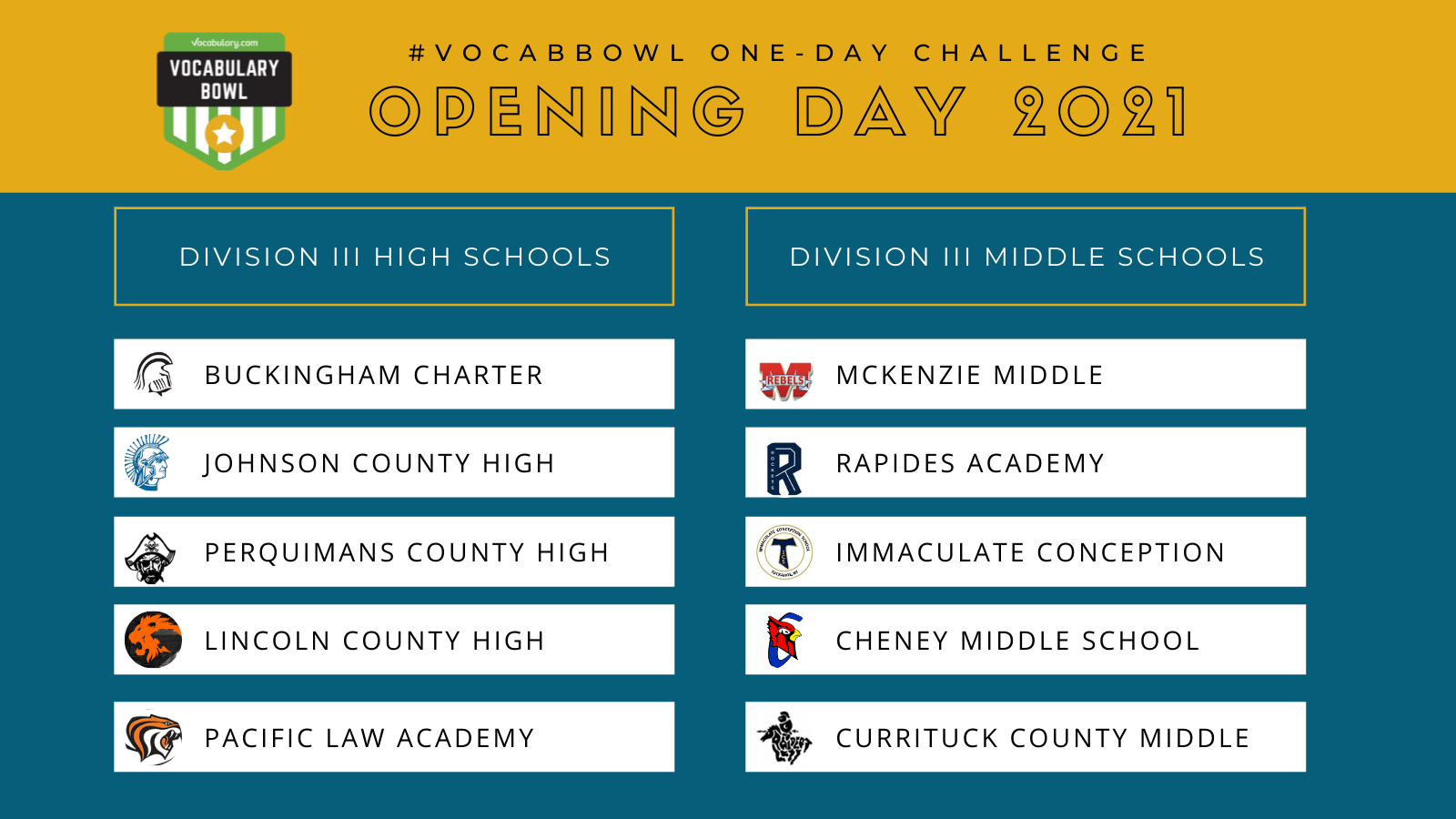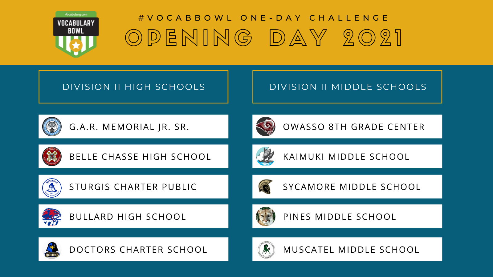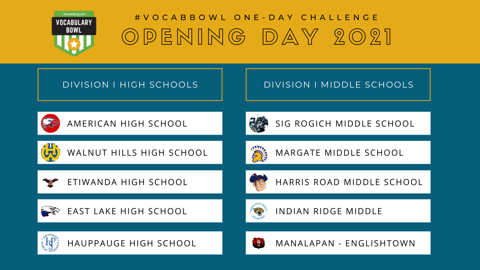 Congratulations to all the schools that competed in our special Opening Day Vocabulary Bowl Challenge!