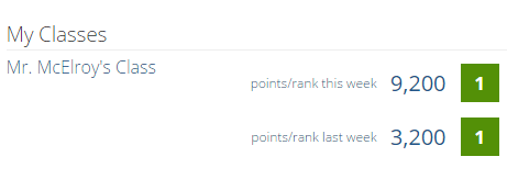 Below the timeline, you'll find three columns of information. On the left, you'll see the level that you've achieved, your overall rank this week and last week, and all of the achievements you've garnered along the way. In the center, if you are a student in a school that has signed up for the Vocabulary.com Educator Edition, you'll also see your recent points and ranking in any classes in which you are a member.