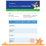 Keep students on track to reach their vocabulary goals this summer with this Vocabulary.com goal tracker! Students can document their total mastered words, set a goal to hit during the break, and track their progress at each checkpoint. Students can use the graph to visualize their progress as they master words.