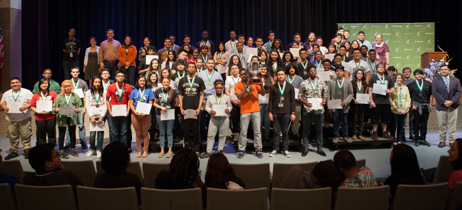 Vocabulary.com celebrated the first-place finish of Houston's Chavez High School in the 2014-2015 Vocabulary Bowl with a special ceremony on Friday, May 15. Students, teachers, and staff were presented with the Vocabulary Bowl trophy, medals for the top 100 students, and a special proclamation from the Texas State Senate commemorating the students’ impressive achievement.