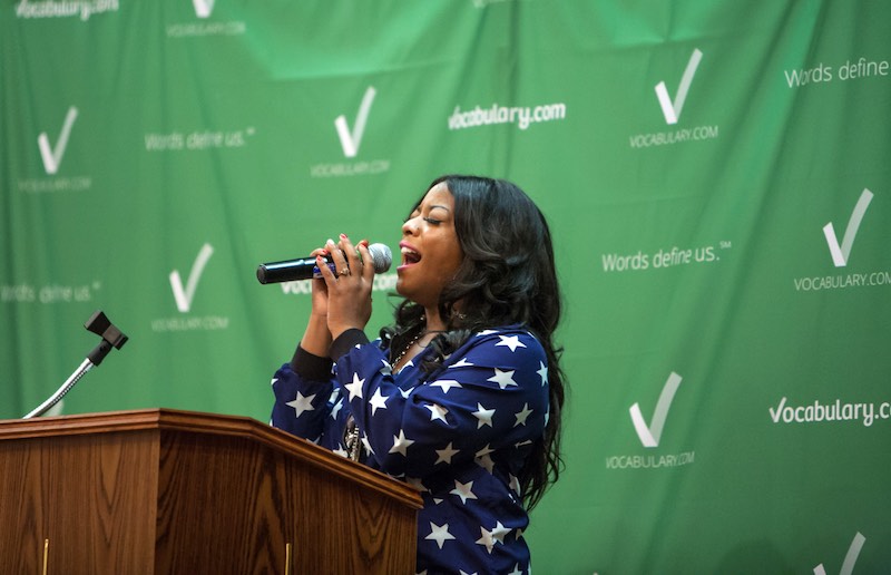 Davis, Brown, and Rivas spoke to the students about how words shaped their lives and praised them for collaborating to build a culture of word-learning and academic success. And Davis, who gained fame as the protege and singing partner of her late mentor Prince, wowed the crowd with a stunning musical performance.