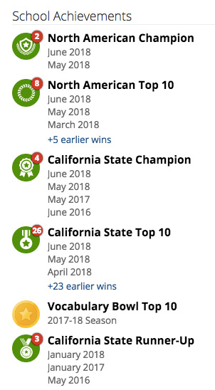 The students at MMS mastered 14,359 words in 30 days, including the words zealous and prevail. These are fitting terms for a school with a zealous commitment to word-learning that prevailed in the 2017 - 2018 season as a Top 5 Middle School.