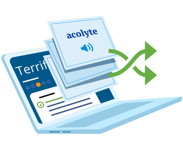 Take vocabulary learning to the next level with this simple but effective new feature! As learners are learning words with Flashcards, they can shuffle the deck to challenge their knowledge of each word and its definition.