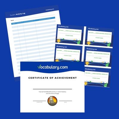 - Achievement certificates: As students master words and level up on Vocabulary.com, celebrate their accomplishments with these printable certificates.