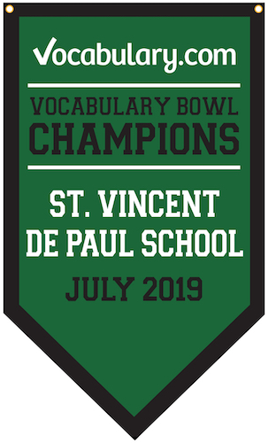 About 500 students attend St. Vincent De Paul School, which serves students through the 8th grade. Each year, the students get summer reading assignments which are paired with practice activities on Vocabulary.com that teach them the words they'll encounter in the books they're reading. This year, SVDP English teacher and veteran Vocab Bowl "coach" Kathy Zimbaldi created a series of assignments that prepped her students to read Schooled by Gordon Korman, Refugee by Alan Gratz, Spooked by Gail Jarrow, and many more titles.