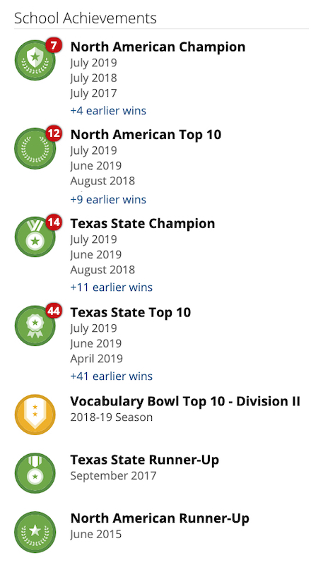Every summer, die-hard Vocabulary Bowl fans watch the July leaderboards to see if a little school from Texas can do it again.