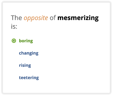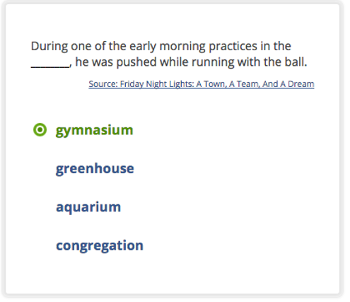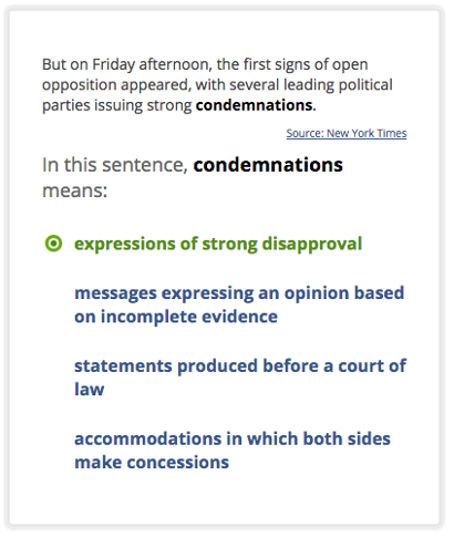 When students encounter new words in different contexts, they are more likely to learn and retain the new words (Santoro et al., 2016). Vocabulary.com's dictionary and word lists show how words are used in a variety of contexts, including literature, newspaper and magazine articles, academic journals, and textbooks. The example sentences provide crucial models of correct word usage that can help students internalize word meaning and commit word meaning to long-term memory.