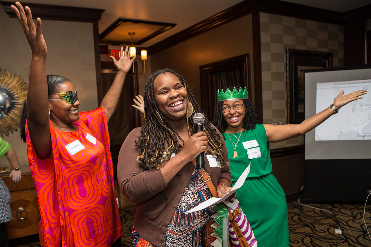 As expected, team play got more than a little raucous. Teams — with names like Team Bazinga, Shiny Happy People, and The Rogues — duked it out for multiple rounds of killer Vocabulary.com questions. Team play went into overtime when they were forced to tap into their inner poet to compose and dramatically deliver odes to vocabulary. Vo-Fab's poetic performance stole the show, but Wordly Wise ultimately outscored all of the other teams and went home proudly donning official Vocabulary.com medals.