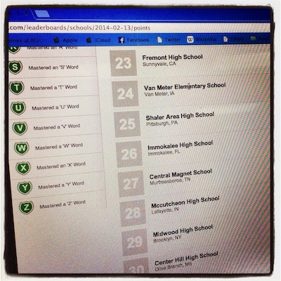 During the webinar, Van Meter students' playing earned them a spot on the Vocabulary.com school leaderboard, inspiring them to keep playing. Wrote Miller, "They were going to keep on playing....and I had several of them tell me they couldn't wait to play at home too."