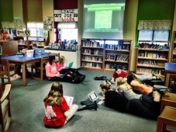 The verdict? Students were "Having Fun And Learning Lots Of New Words." So much so that Miller posted about it on her blog, featuring great pictures of students immersed in learning on laptops, tablets, and through the library's SmartBoard, where the webinar was displayed.