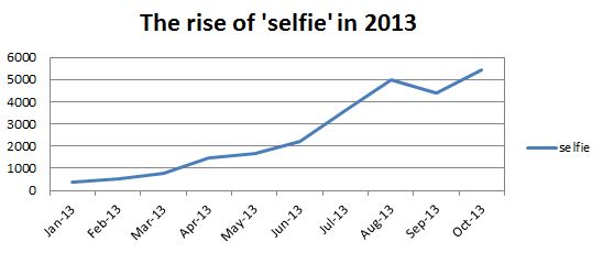 A graph shows the stunning increase in frequency of selfie in the Oxford English Corpus over 2013: