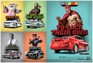 As for Honda, the problem here is that "To Each Their Own" riffs on a well-known idiom — "to each his own" — that goes all the way back to Cicero's "Iustitia est unicuique suum tribuendi" ("Justice is the giving of each to his own"). (And no, the soundtrack for the Honda ads isn't "To Each His Own.") The change to "their" is neither clever nor brand-enhancing; it just sounds dumb, and "dumb" isn't an adjective we want to associate with a carmaker. How to fix it? Well, Honda might have gone with "To Each Its Own," which makes sense with the weird-characters theme. It could matched each ad's featured character with a gendered pronoun — "To Each Her Own" for the lady ninja, for example. That approach would have emphasized the personalization angle Honda is pushing. But frankly — and I speak here as a longtime Honda owner as well as a verbal-branding critic — the whole campaign seems off-target — and off-putting — to me. I'd go back to the drawing board on this one.