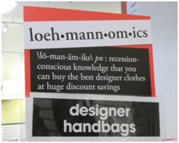 Finally, there's the desire for the credibility and authority that — to many people —an old-fashioned print dictionary still confers. (Newspaper editor and occasional Visual Thesaurus contributor John McIntyre calls this way of thinking "dictionary fundamentalism.") It's an impulse similar to the one that provokes some people to protest that a usage "isn't a word" if it doesn't appear in Webster's or Collier's or the American Heritage Dictionary — or the Visual Thesaurus, for that matter. Conversely, if you can claim the stamp of dictionary approval — as discount retailer Loehmann's did with its "Loehmannomics" promotion — you can hope to be perceived as intelligent and trustworthy, even with an invented word, a mysterious part of speech, and a clunky definition.