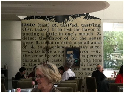 At the J. Paul Getty Museum in Los Angeles, the nameless restaurant — it's just called The Restaurant — makes an interior-design statement with what looks like an enlargement of a dictionary entry for "taste."