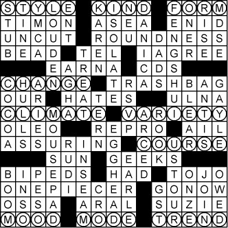 As in past months, this crossword relies on how the Visual Thesaurus links from one word to another to form a chain of synonyms. Use the Visual Thesaurus word maps to figure out how one step links to the next. You'll find that the first and last steps in the chain, when taken together, form a phrase you might hear while watching the Indianapolis 500 auto race.