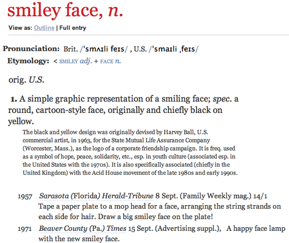 Although digital dictionaries can take advantage of graphics in ways that print dictionaries cannot, the online OED includes no illustrations in its definitions of heart or smiley face.
