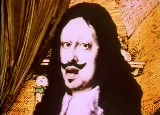 While contemporary examples of Internet burlesque have counterparts in antiquity, it seems likely that the groundwork for what we see online today was set down more recently — for example, in the pre-Internet work of the comedians behind Monty Python's Flying Circus, which exploited burlesque in much of its humor. In particular, many of the cutout animations of Terry Gilliam drew on burlesque by taking images from art and undermining them by introducing anachronistic language. This cutout historical figure, for example, has been given a movable jaw so that he can announce that he has just invented the air sickness bag in Gilliam's animation The Miracle of Flight.
