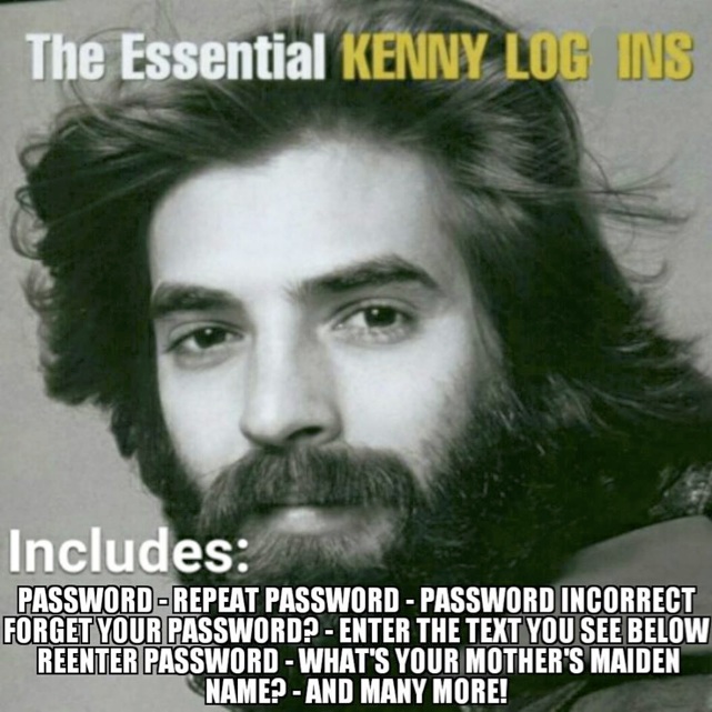 The Facebook pages associated with the initialism UUUM (Useless, Unsuccessful, and/or Unpopular Memes) are another showcase for burlesque. A recurring theme there is the imposition of a comic caption, nearly always the low contribution, onto an image that would otherwise lend itself only to a literal interpretation, thus undermining the literal intent of the image. The distance between high and low is not always great. Here, for example, is a makeover of the album cover of "The Essential Kenny Loggins," updated for Internet giggles with the help of a pun: