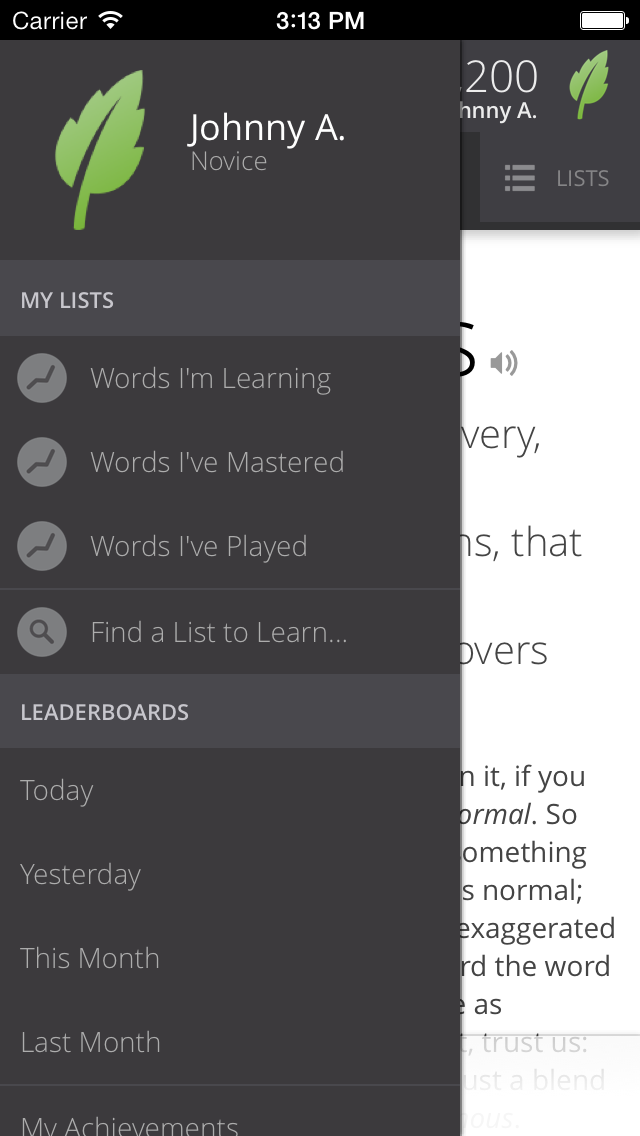 - Tap the hamburger menu (on the upper left). Scroll down to see leaderboards, and compare your score to others playing Vocabulary.com.