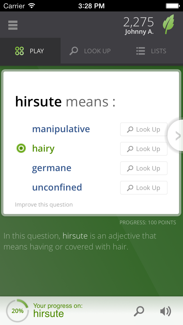 - It's a game. Earn point and badges and compete with your friends - while improving your vocabulary.