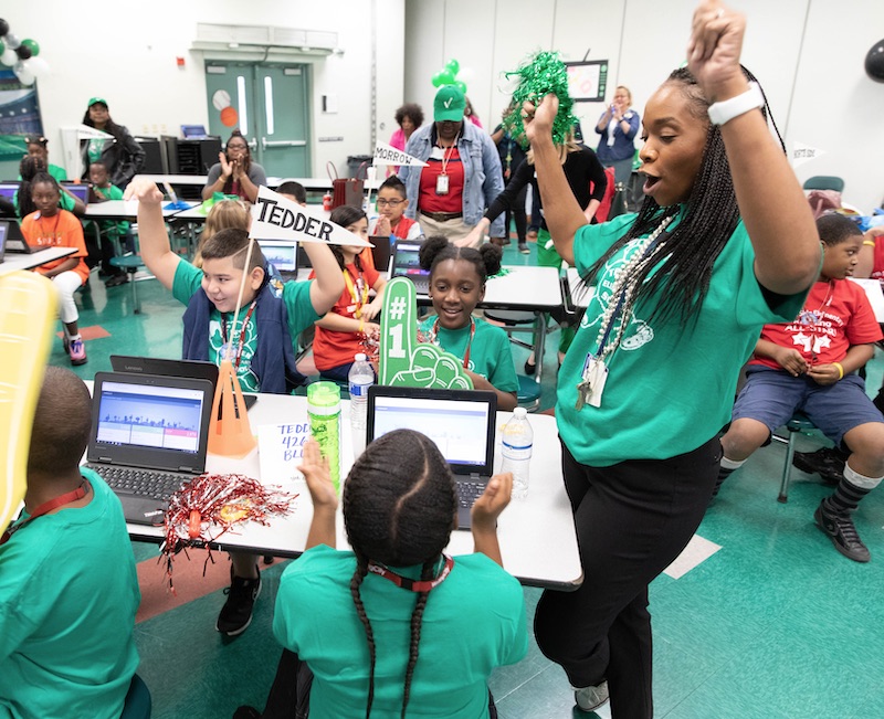On the day of Broward's Big Game, the energy level was so high, you'd never have guessed this was a vocabulary challenge rather than a football game. Students and their literacy coaches, all decked out in bright t-shirts in their school colors, poured out of the buses and charged into the cafeteria at Tedder Elementary, the host school. Tedder Principal Shinita Coachman-Beavers and her staff were at the gates, welcoming and cheering on all their guests.