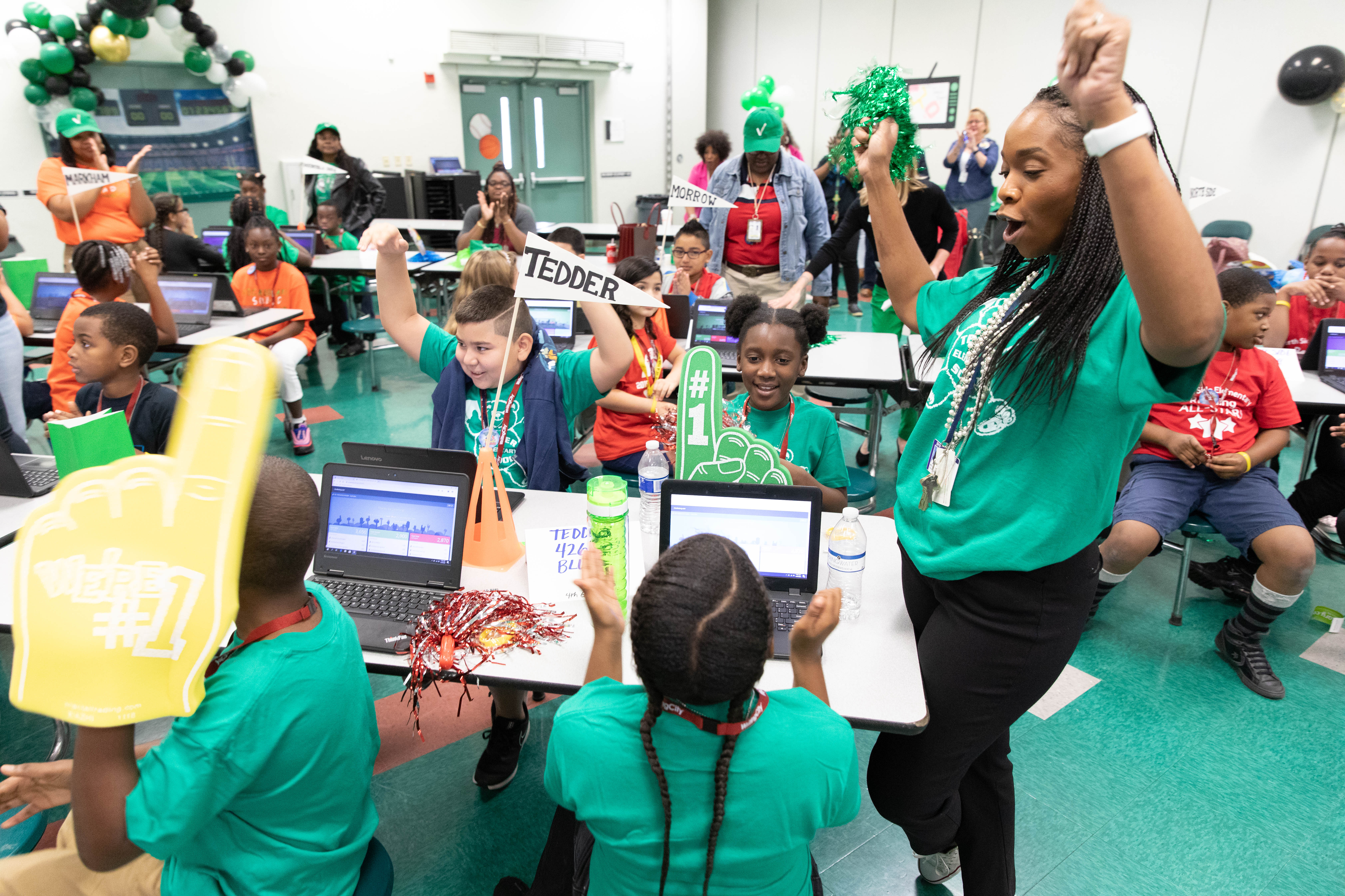 At the end of January, right before Super Bowl weekend, 150 students from eleven schools came together to face off in a competition of their own — an epic Vocabulary Jam. They bolted off the school buses, charged into the cafeteria, and huddled with their teams.