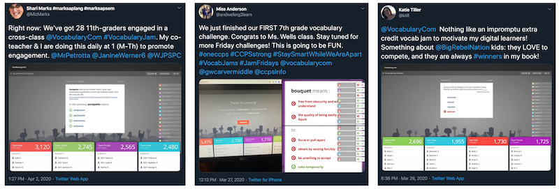 The Vocab Jam is a competition where teams compete in real-time to see who can answer the most questions correctly. It's one more way (along with The Challenge and the Vocabulary Bowl) that we've gamified vocab instruction to engage and to motivate students.