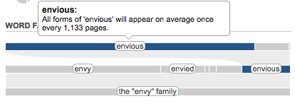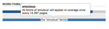 Compare that to similar-sounding emulate, which appears every 1,143 pages, envious, which appears once every 1,133, and tremulous, which beats both at 843.