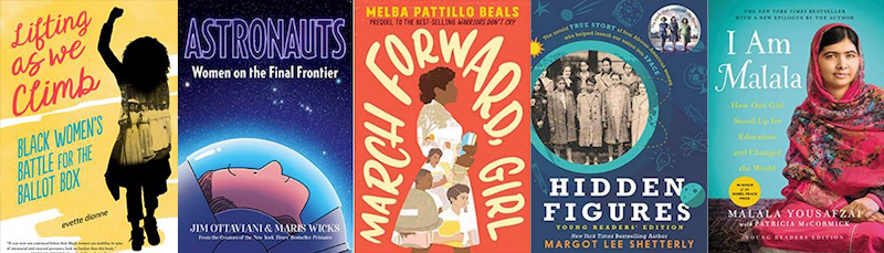 Astronauts by Jim Ottaviani and Maris Wicks. Using a graphic novel format, the authors of Primates tell the stories of the first women in space, focusing on astronaut Mary Cleave.