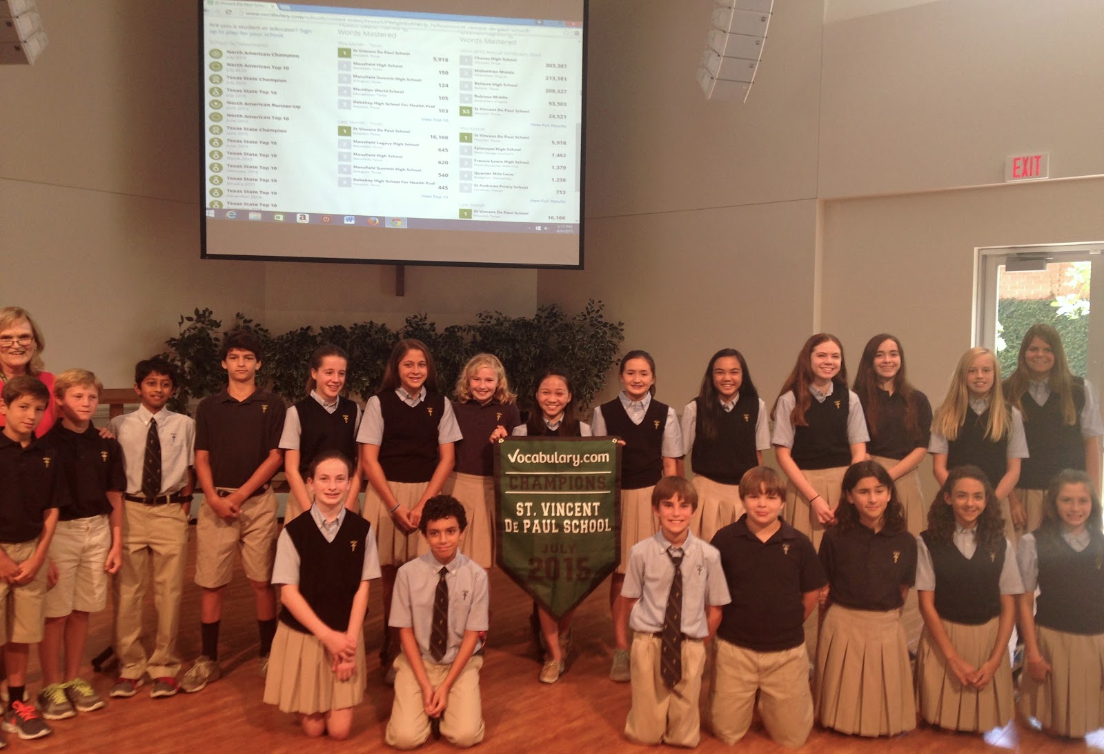Another incentive? As trailblazers in incorporating Vocabulary.com into summer learning, St. Vincent de Paul became the North American Vocabulary Bowl champion for mastering the most words in July and August of 2015, an accomplishment that further motivated students to continue wanting to learn more words.