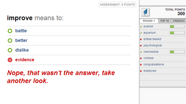 Quick Quiz: Vocabulary.com assigns you harder or easier words…