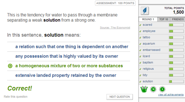 If you're a teacher, the presence of this adaptive learning system means word learning on Vocabulary.com is a quick and easy way to ensure your students receive differentiated vocabulary instruction. If you're here just for fun, it means word learning on Vocabulary.com will never get boring by being too easy or too hard.