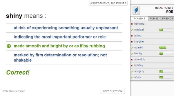 Quick Quiz: Vocabulary.com assigns you harder or easier words…