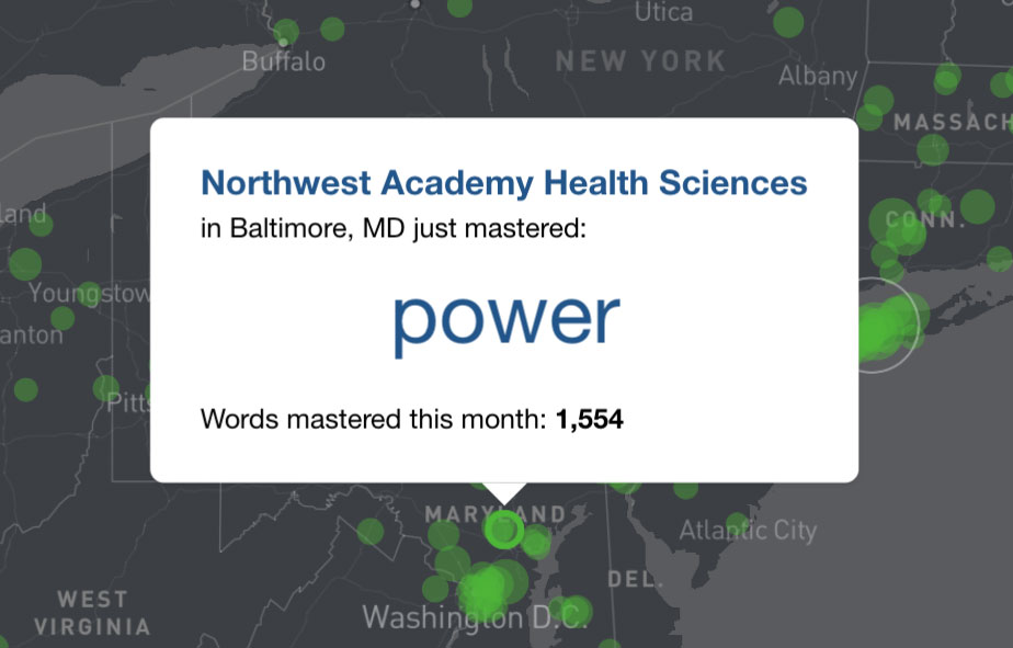 The BCPS teaching staff was given training and support by their ELA Resource Teachers and the Vocabulary.com team, and soon everyone was off to the races. Teachers started assigning vocabulary practice and quizzes and projecting the real-time leaderboards in their classrooms. Principals touted the competition in their communications with staff and families. Many teachers encouraged students to log on to Vocabulary.com after they had completed their class work and play The Challenge as an enrichment activity. And — most importantly — the students themselves invested the effort it takes to master words and propel their school to victory.
