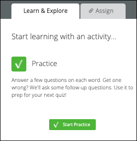 Aim for 3-5 practice sessions each week. We recommend that you complete the four weekly practice activities over the course of 3-5 sessions. The amount of time it takes to finish practicing a list will vary depending on your understanding of the words. That's because when you answer a question incorrectly, Vocabulary.com will give you additional questions on that word to increase your exposure and teach you what it means.