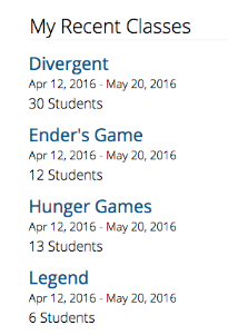 In fact, some teachers even organize their "classes" on Vocabulary.com based on their students' reading choices. For example a middle school teacher in Iowa organized her students into four classes based upon their reading preference, each class representing a different novel study: Divergent, Ender's Game, The Hunger Games or Legend.