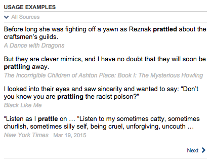 We think it's fun that more than a dozen lines from Wood's Incorrigible series show up in our Dictionary's usage tracker, which compiles real world sentence examples for every word we define. Here are screen shots of three of these words. Click through to see each Dictionary page in full.