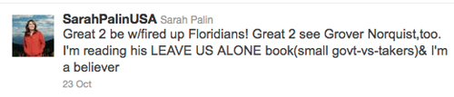 A Sarah Palin tweet showing the kinds of linguistic compression often associated with the genre.