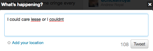 Last spring the New York Times reported that more and more grammar vigilantes are showing up on Twitter to police the typos and grammar mistakes that they find on users' tweets. According to the Times, the tweet police "see themselves as the guardians of an emerging behavior code: Twetiquette," and some of them go so far as to write algorithms that seek out tweets gone wrong.