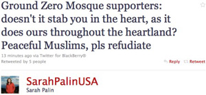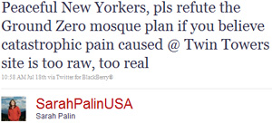 But what the tweet police are looking for are more traditional usage gaffes, like problems with subject-verb agreement, misspellings, or incorrect use of apostrophes. And they don't like mistakes in word choice, as when Sarah Palin tweeted refudiate, not repudiate, in her objection to the Islamic Cultural Center being built near Ground Zero in lower Manhattan.