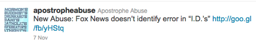 And the ambiguously-named @apostropheabuse doesn't abuse apostrophes, it makes fun of tweets which abuse them.