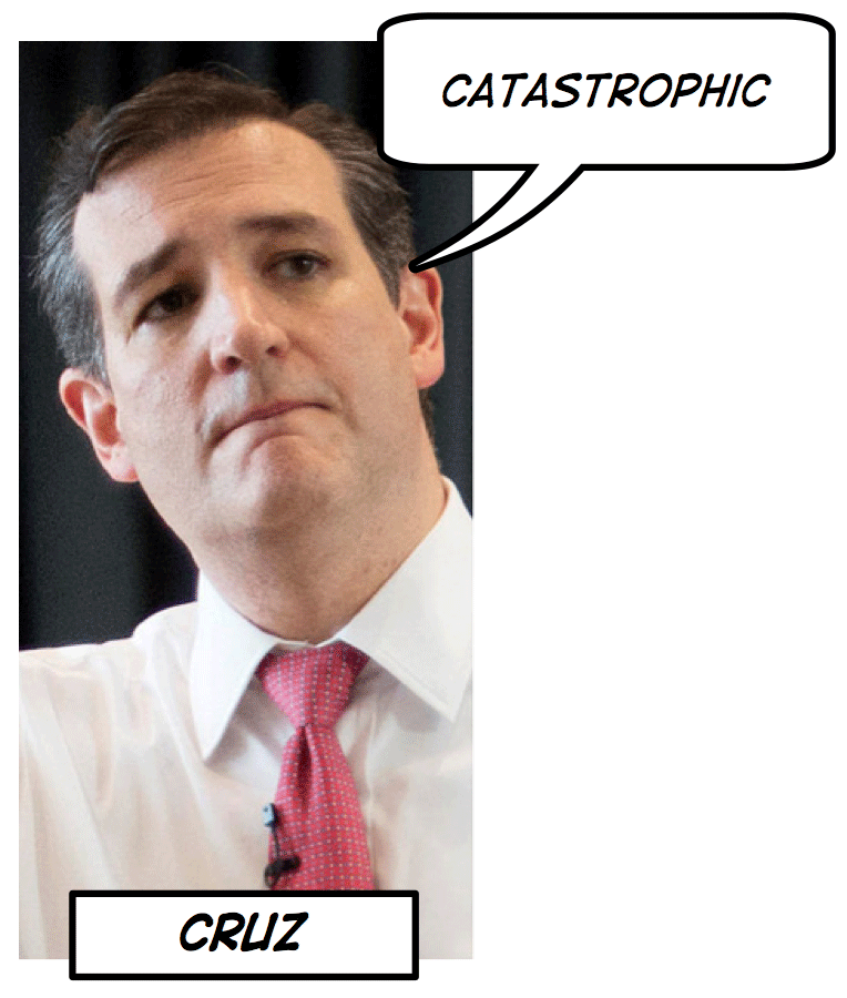 Ted Cruz twice used catastrophic to describe the international agreement on Iran’s nuclear program, negotiated in part by Secretary of State John Kerry. Cruz’s hyperbolic choice of words serves as a dire prediction of the disastrous future that he sees transpiring as a result of the agreement.