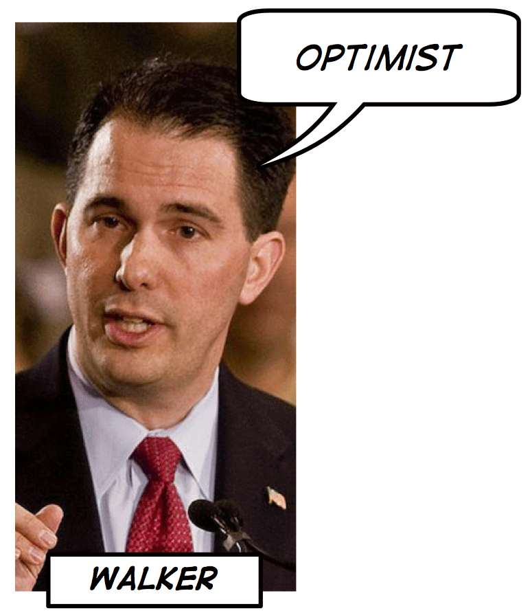 Scott Walker ’s use of optimist positioned himself in the feel-good tradition of Reagan and his soaring rhetoric about America as the “shining city on a hill.” As with his fellow candidates, Walker accompanied that optimism for the future with expressions of despair for the current state of the country.