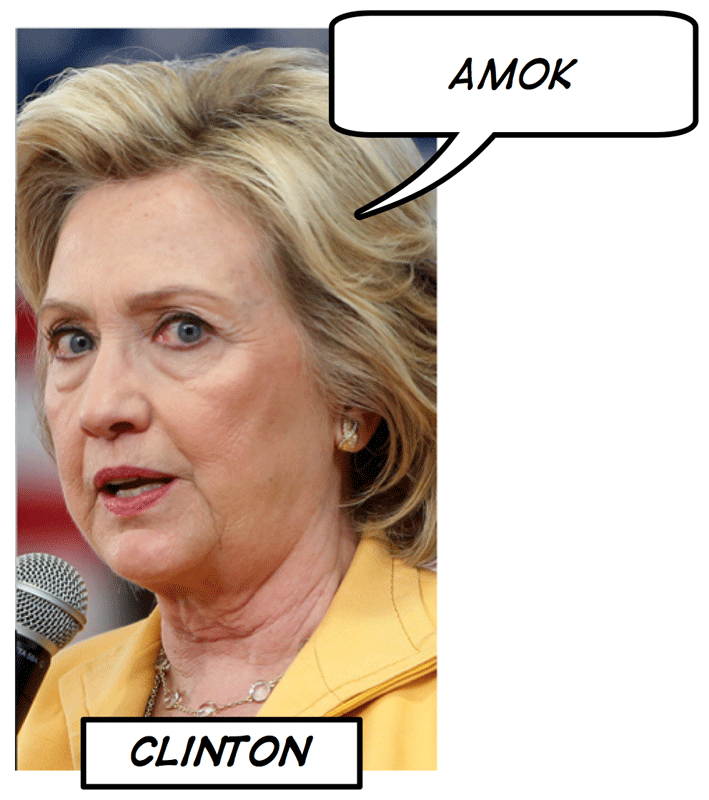 This word signals out-of-control, chaotic behavior, and is almost exclusively seen in the phrase "run amok." Amok originally comes from the Malay language, from a word that means "attacking furiously." Clinton used the word to refer to the excesses of capitalism, a system that needs to be put in check lest it "run amok" and lead to stark income inequalities.