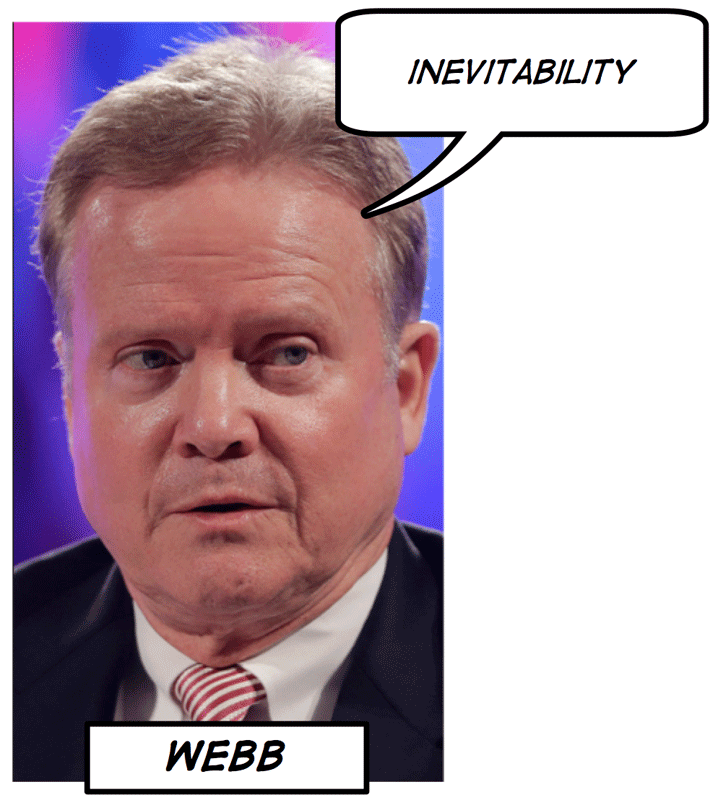 When Cooper asked the candidates about the enemies they are most proud to have made, most answered in political terms, but Webb brought it back to his military service, reminding viewers that he saw combat with the Marines during the Vietnam War. The incident with the grenade burnished Webb's pugnacious persona.