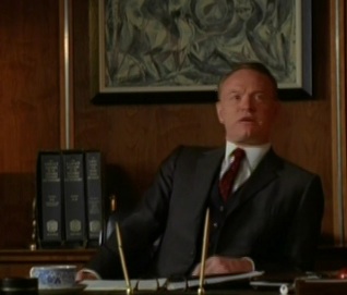 The current season of "Mad Men" is set in 1963, following two seasons set in 1960 and 1962 respectively. The ad agency at the heart of the show, Sterling Cooper, has been sold to a British agency, Putnam Powell & Lowe. Overseeing things at their newly acquired New York outpost is Putnam's financial officer, Lane Pryce (wonderfully played by Jared Harris). Pryce has decorated his office with some distinctly British accessories, including a suit of armor. In the latest episode ("Love Among the Ruins"), we see another decorative touch on the credenza behind Pryce's desk.