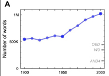 According to the culturome researchers, the English vocabulary doubled during the twentieth century, growing from 544,000 words in 1900 to a little over a million in 2000 (the culturonomists contribute to this lexical explosion by coining culturomics, along with its unit of measurement, the culturome).