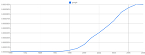The culturome seems to indicate that a lot more happened in the second half of the twentieth century than in the first, and most of it isn't in the dictionary. What could generate more words than two world wars, the Great Depression, and the invention of the movies, radio, television, and the computer? After all, the 1950s saw the growth of a lexically-challenged, cookie-cutter suburbia, and no one was aware enough of 1960s to record its vocabulary. The 70's gave us Vietnam and bad hair, and the 80's, bad music, all of which can be summed up in very few words. But then came the 1990's and the birth of Google, a company that as recently as 2006 insisted that google was not a word. And after Google comes the vocabulary deluge, along with our new-found ability to count words--or strings of characters uninterrupted by a space--we never knew we had.