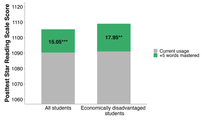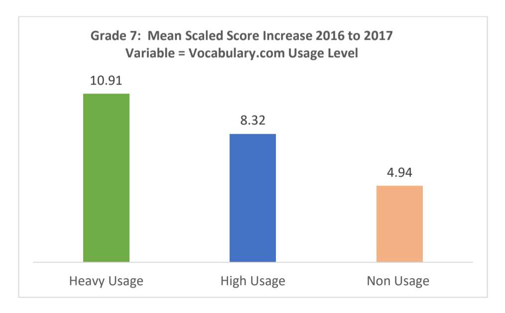 This study examines the effect of increased Vocabulary.com usage on reading achievement among 7th- and 8th-graders in a Wisconsin middle school, as measured by the Wisconsin Forward Exam in ELA. How did the amount of Vocabulary.com usage relate to students' performance?